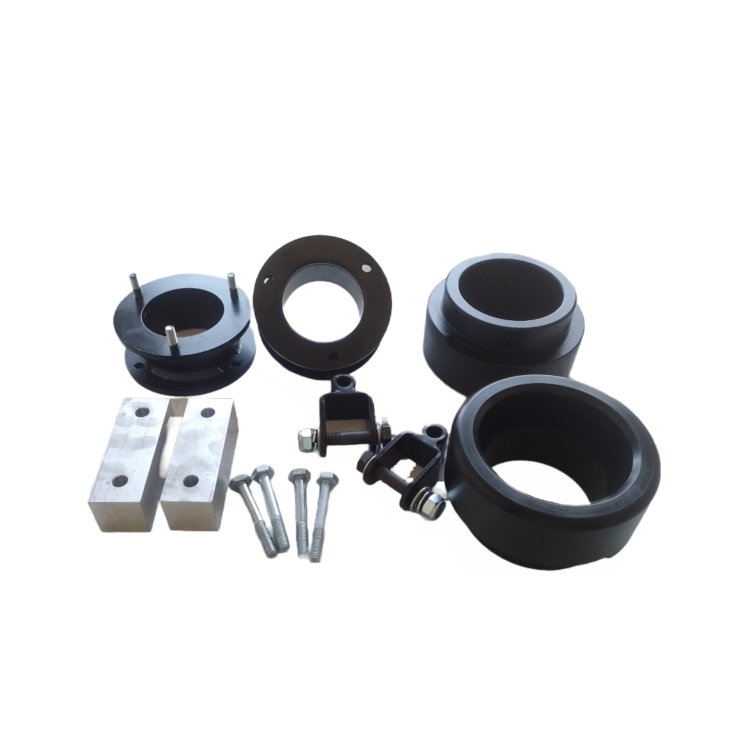 02 alongadores para a torre de suspensão dianteira; 02 prolongadores para a barra estabilizadora; 02 calços de mola para a suspensão traseira e 02 prolongadores dos amortecedores traseiros. Material resistente e de qualidade. Usinagem precisa. Serve nos modelos até 2015. Enviamos o passo a passo e damos suporte por telefone se precisar.